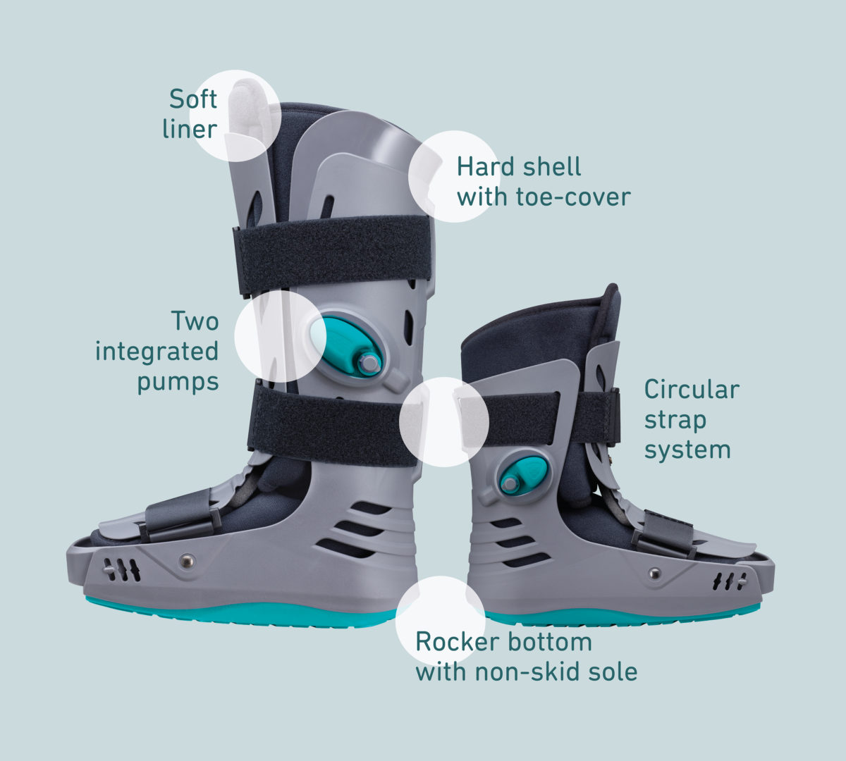 Protection and comfort – shell pneumatic walker boot with adjustable air bladder system stabilizes and immobilizes the ankle
