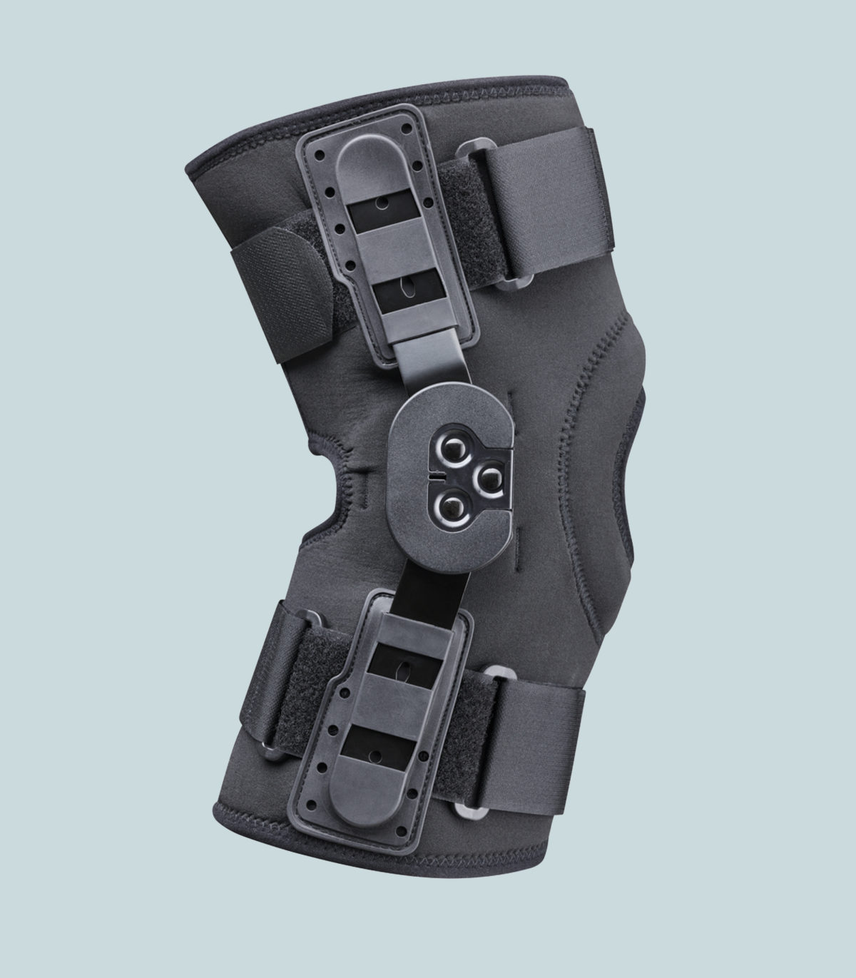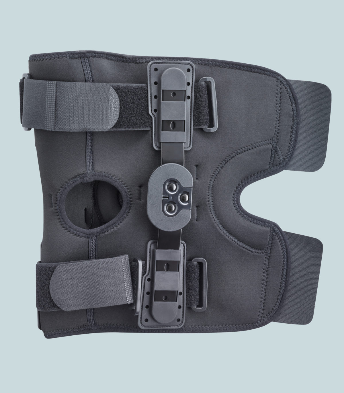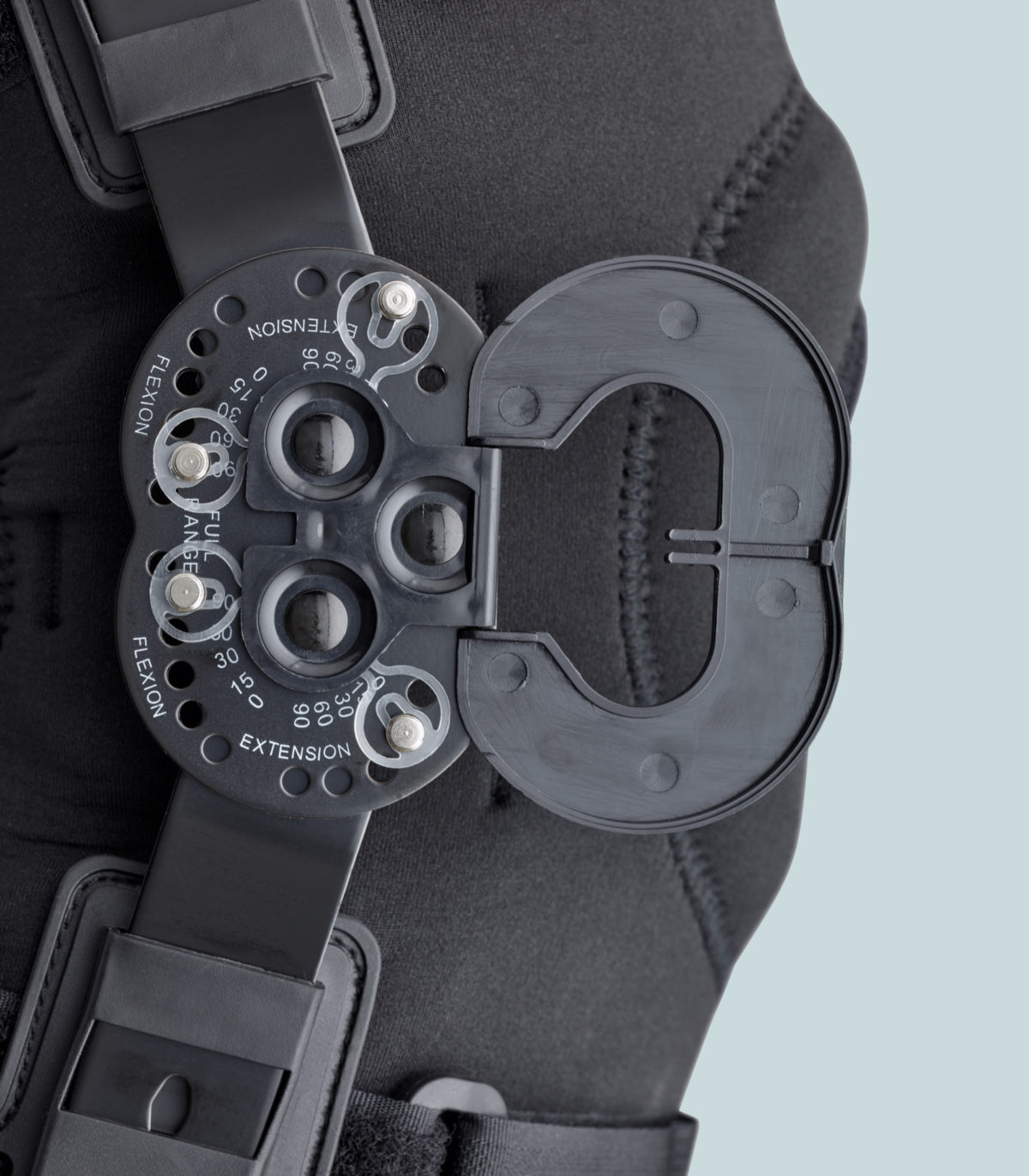 Wrap-around ROM knee brace for improved lateral stability and controlled movement